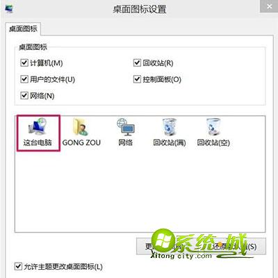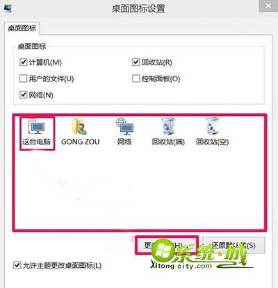 3、选中“我的电脑”,点击“更改图标”按钮;