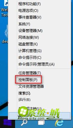 2、或者右键开始按钮,在打开的菜单中选择控制面板。