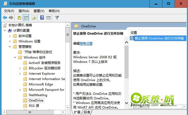 以上就是win10系统禁用OneDrive云存储的方法了,有需要的用户就根据这个方法来设置,更多精彩内容尽在系统城下载站www.xitongcity.com!