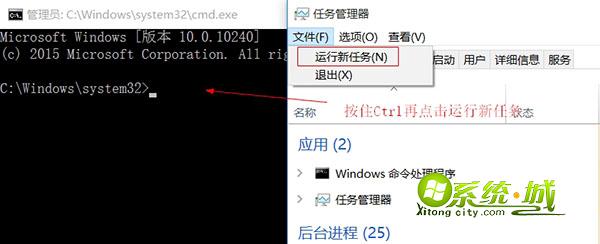 2、点击“文件”,按住Ctrl,再点击“运行新任务”,弹出管理员cmd窗口,如图所示。
