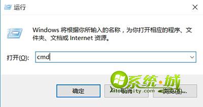 1、按下Windows+R,在运行中输入cmd快速打开命令提示符。