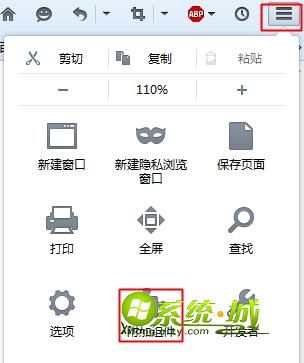 1、以火狐为例,打开浏览器界面,右上角点击设置—附加组件;