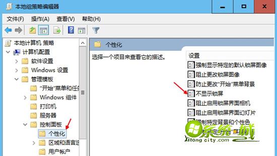 2、点开管理模板—控制面板—个性化—不显示锁屏,双击打开;