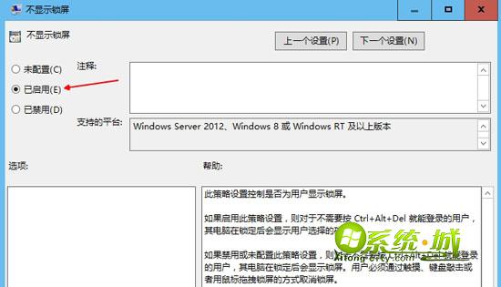 3、将不显示锁屏设置为“已启用”确定;