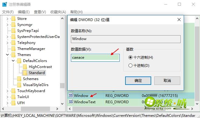 4、将window数值修改为caeace,十六进制,确定,注销系统重新登录;