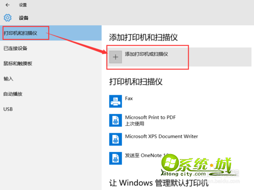2、点击打印机和扫描仪选项的“添加打印机和扫描仪”,如果扫描到打印机,直接添加;