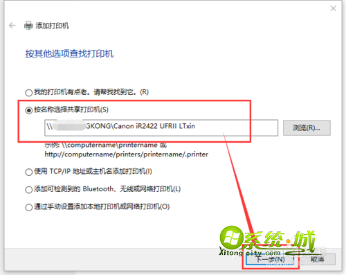 5、在打开的窗口中选择打印机所在的主机,选择相应的打印机,下一步;