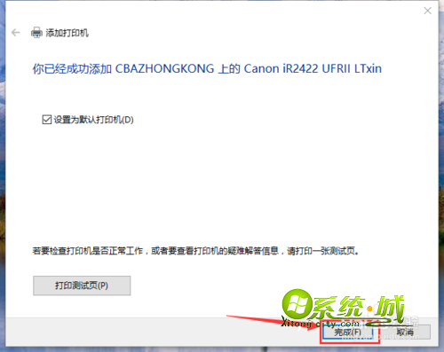 9、如果需要将该打印机设置为默认打印机,勾选“设置为默认打印机”选项,最后点击“完成”。
