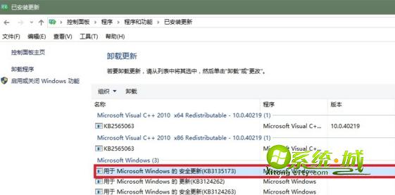 2、找到KB3135173,右键“卸载”,重启系统。