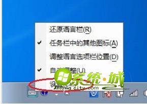 一、 在上图所示的输入法图标上面点击鼠标右键,弹出菜单中点击“设置”;