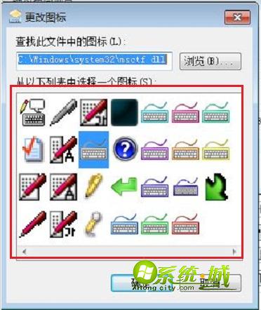 四、现在可以使用罗列出来的图标(选中一个图标一路点击确定即可),也可以点击“浏览”指定使用外部的图标文件;