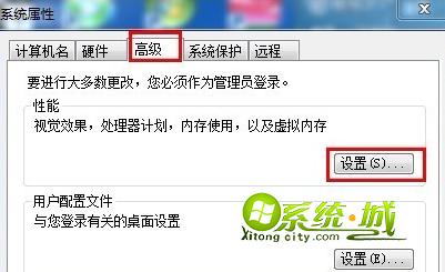 三、进入“高级”选项卡界面,点击性能下的【设置】按钮;