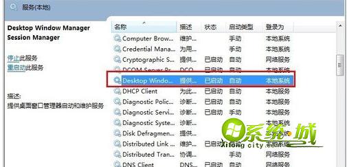 三、在右边窗口找到名称为“Desktop Window Manager Session Manager”的服务,双击打开;