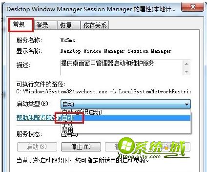 四、弹出的界面,点击“常规”选项卡,点击启动类型的下拉框,选择“自动”;
