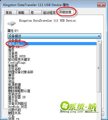 3、在弹出的“属性”界面中点击“详细信息”,设备“属性”下拉框中选择“硬件ID”;