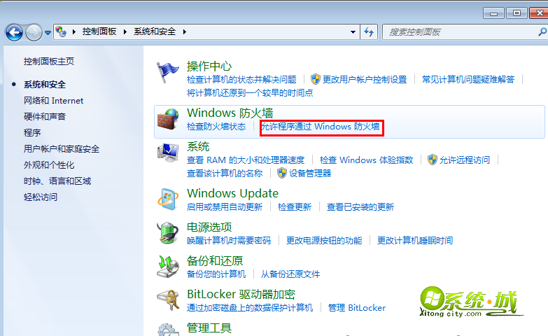 4、到“控制面板”—“系统和安全”—“允许程序通过防火墙”钩上FTP及后面两个框框即可。