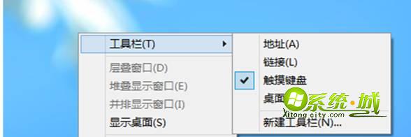 1、在任务栏上单击右键—工具栏—触摸键盘,添加触摸键盘即可;