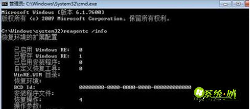 3、弹出 Windows RE 的相关信息,从这里可看到“已启用 WindowsRE”的值为“0”Windows RE是禁用状态;