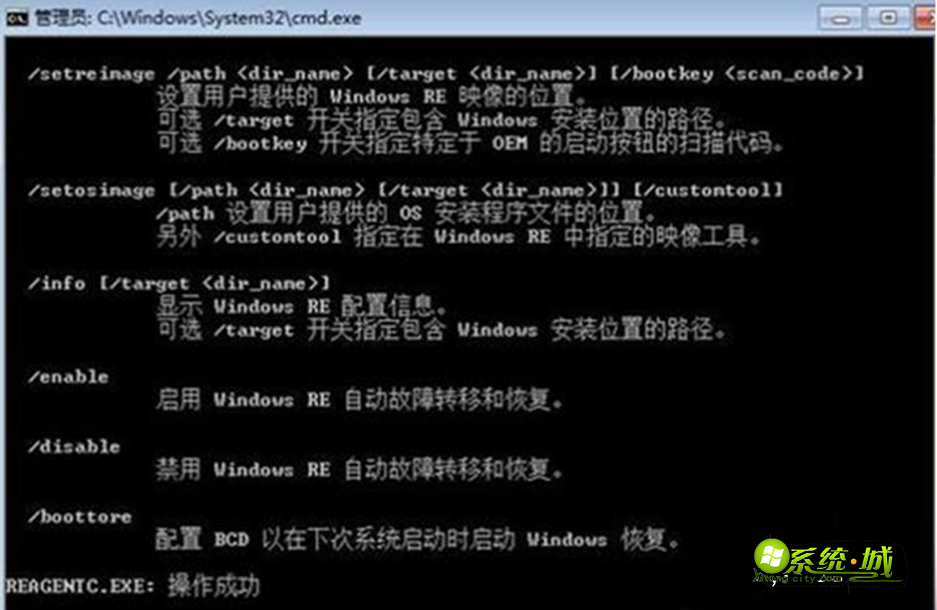 5、如果命令执行成功就会获得“REAGENTC.EXE: 操作成功”的信息提示;