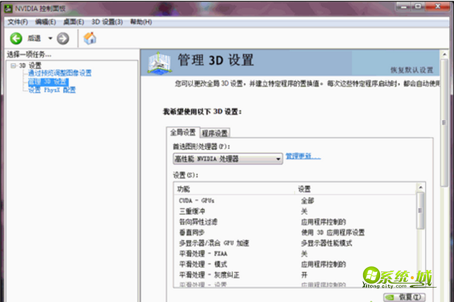 2、依次选择“管理3D设置—高性能处理器”,添加程序;
