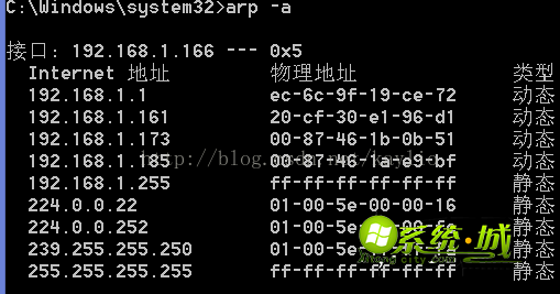 5、在命令提示符输入运行 arp -a 命令,就可看到绑定好的网关处于静态。