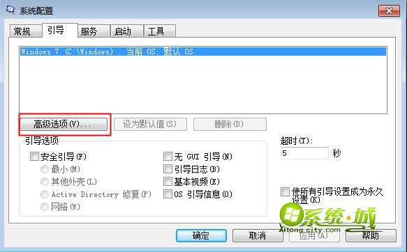 1、在打开的系统配置中,切换到“引导”栏目,点击“高级选项”;