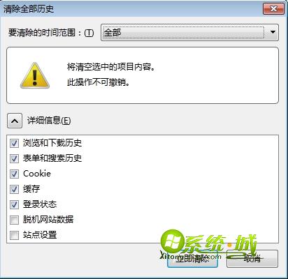 3、清除浏览器缓存文件,按Ctrl+Shift+Del打开清理界面,勾选缓存,点击立即清除。