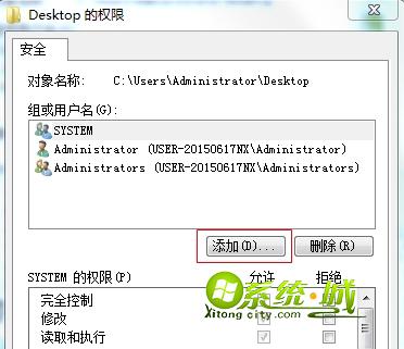 2、在文件夹权限设置对话框,点击“添加”按钮;