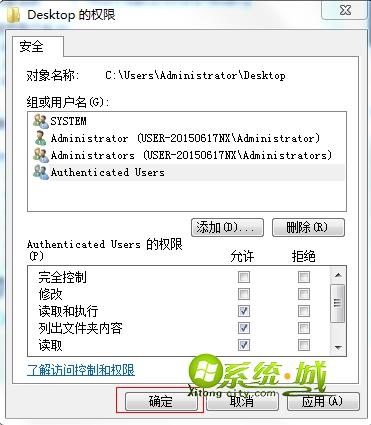 4、在“组或用户名”中就多了Authenticated Users用户,直接点击确定,小锁图标就消失了。