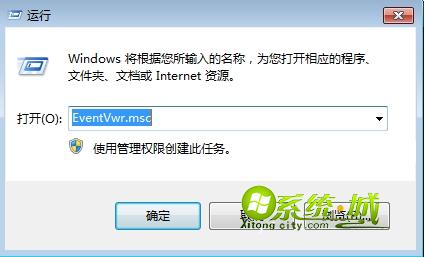 1、在正常进入系统时,按下”Win+R”打开运行,输入EventVwr.msc,确定;