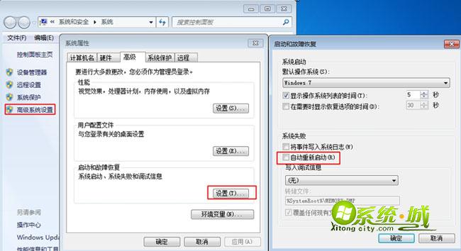 1、右键“计算机”—“属性”—“高级系统设置”—启动和故障恢复的“设置”;
