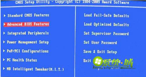 1、开机时,先按Del键进入该BIOS设置界面,再选择高级BIOS设置:Advanced BIOS Features。