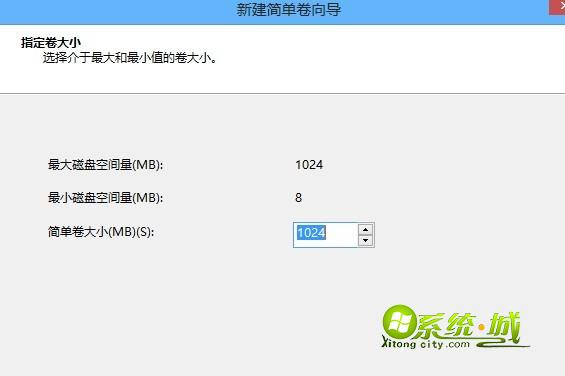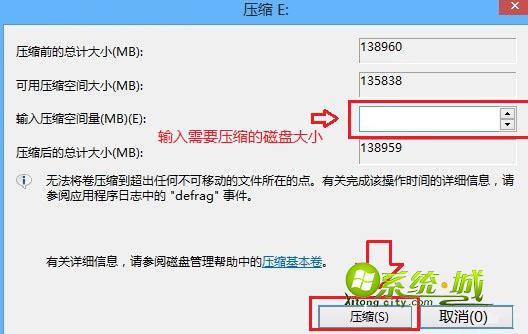 步骤三、下面一步就是Win8分区的关键了,根据可压缩的空间大小和自己的需求输入压缩空间量。以下笔者想新分出一个1G的新磁盘,因此在下面输入1024,最后点击底部的“压缩”即可;