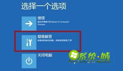 4、重启之后,发现“高级启动项”也是Metro界面,选择“疑难解答”;如下图所示: