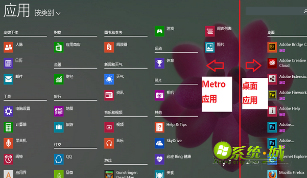 4、默认的显示:Metro应用在左边,桌面应用显示在右边。如下图所示: