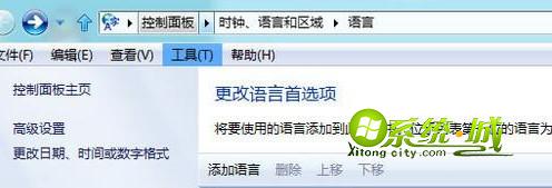 5、点击更改语言首选项,打开“控制面板”的语言栏选项;