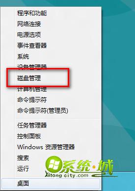 1、按 “Win + X ”打开系统工具快捷菜单,从中选择磁盘管理;