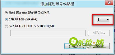 5、在“添加驱动器号和路径”窗口中,选择需要为分区或者驱动器分配的盘符,点击确定即可。