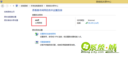 通过win8.1系统的网络共享中心我们可以看到目前所处的网络类型为公用网络连接,下面我们要做的就是将其设置为专用网络连接。