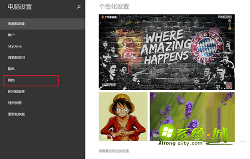 在打开的“电脑设置”中,选择左侧的“网络选项”;