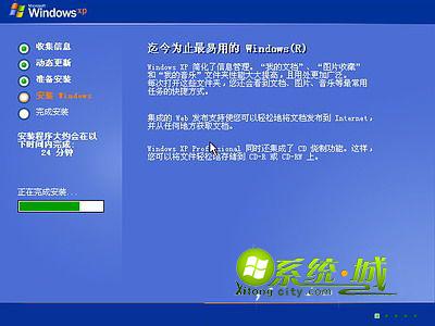 文件复制完后,安装程序开始初始化Windows配置。然后系统将会自动在15秒后重新启动。