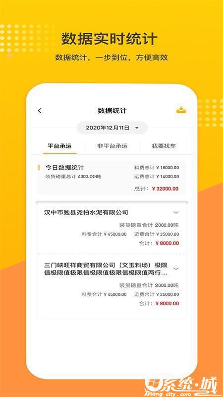 2、统计展示丰富的平台数据,系统自动统计展示平台运输数据等内容