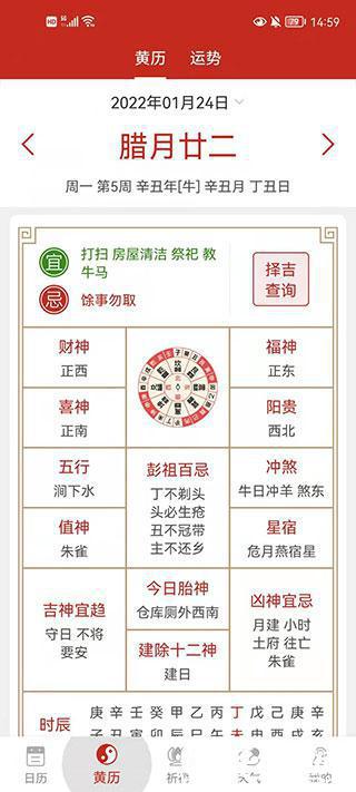 ・黄历:全面的老黄历信息,详细罗列黄历宜忌、黄道吉日等,同时还附有黄历现代文解读,帮助您轻松掌握
