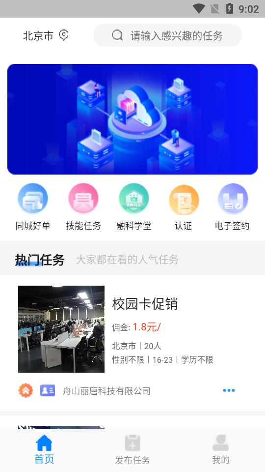 2、所有工作均通过后台审核,提供同城兼职、企业认证、电子签约等功能;