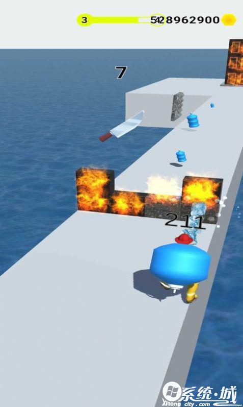 3、用手中的喷水枪来精准的射击这些火焰,并在这个过程中能躲避更多的危险障碍。