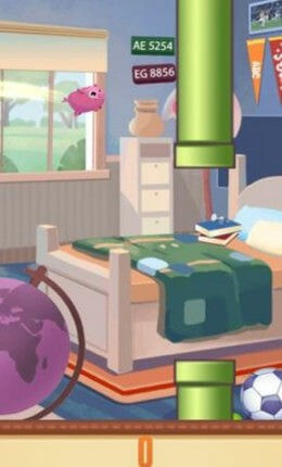 3、趣味的冒险,贪吃的猪猪想吃到爱心,需要你适当的操作,不然就会撞到管道。