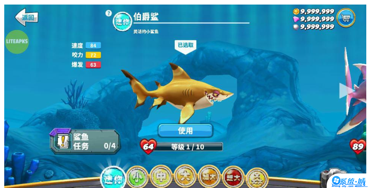 --可以收集各有7种不同大小的20类鲨鱼品种,扮演敏捷的双髻鲨,甚至到著名的大白鲨!