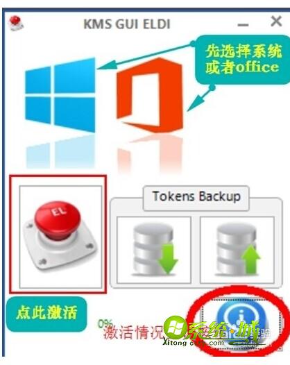 5、选择要激活的系统图标(因为这个工具还可以激活Office2013),然后单击左下角那个红色的按钮