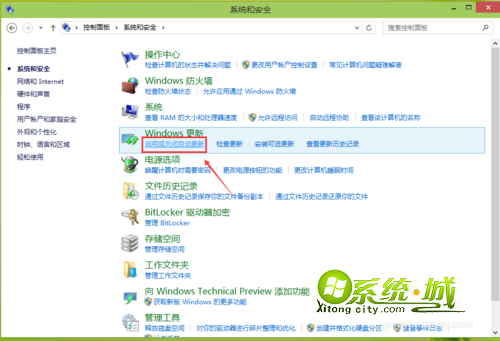 3、在系统和安全对话框里点击“Windows更新”下的“启用或关闭自动更新”;
