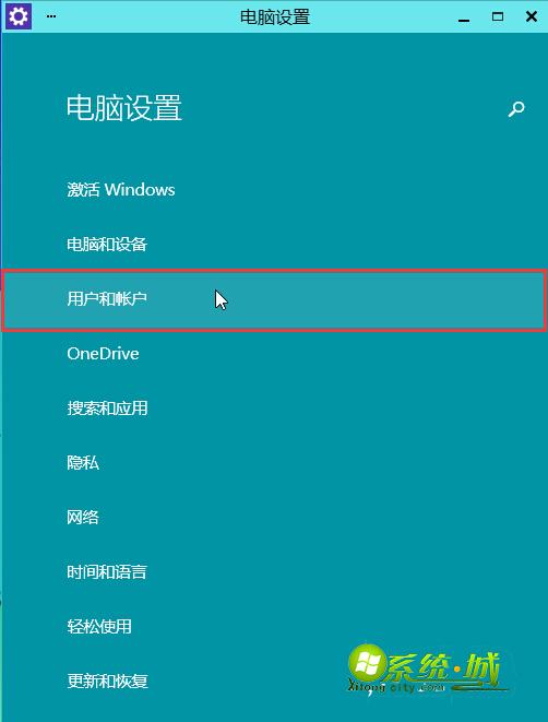 2、在电脑设置界面中,点击打开“用户和帐户”进入下一步操作;